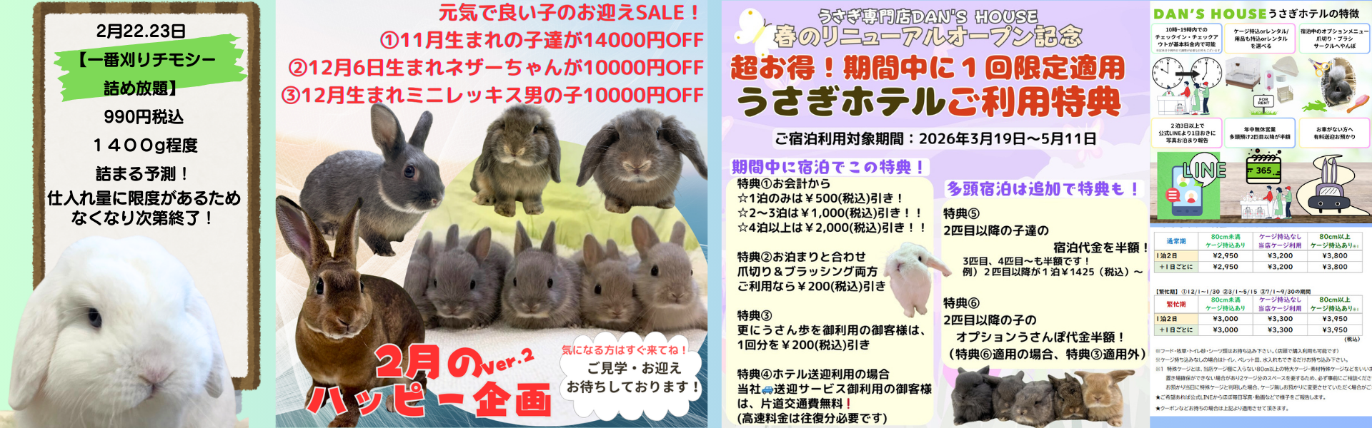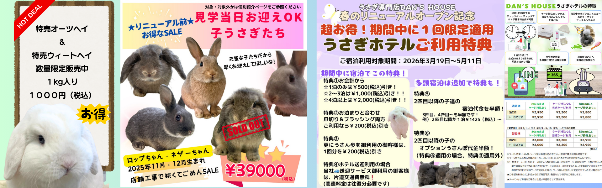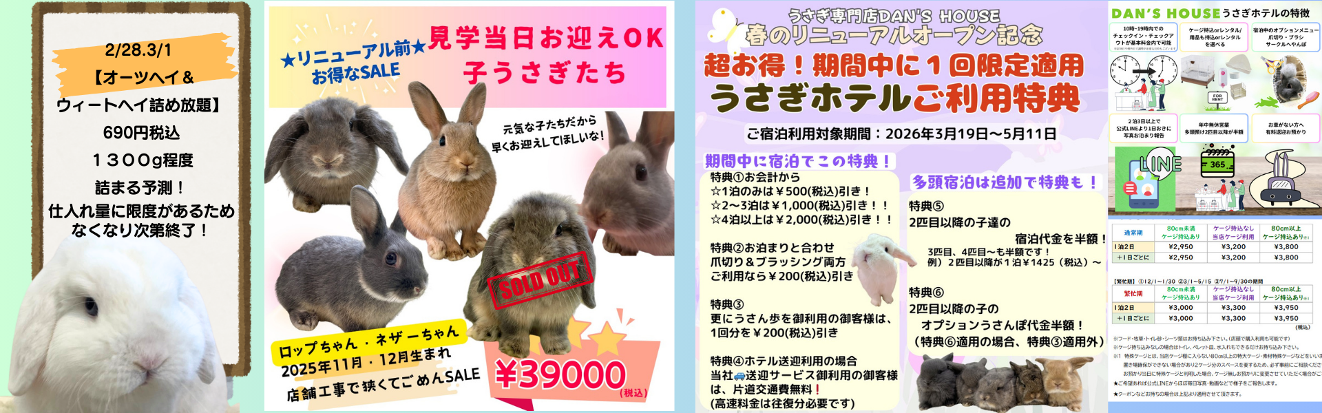 タイミングにより多種多様に子うさぎ達がいるとは限りませんが、たっぷり愛情を注いで育ててきた子達とご来店をお待ちしております。