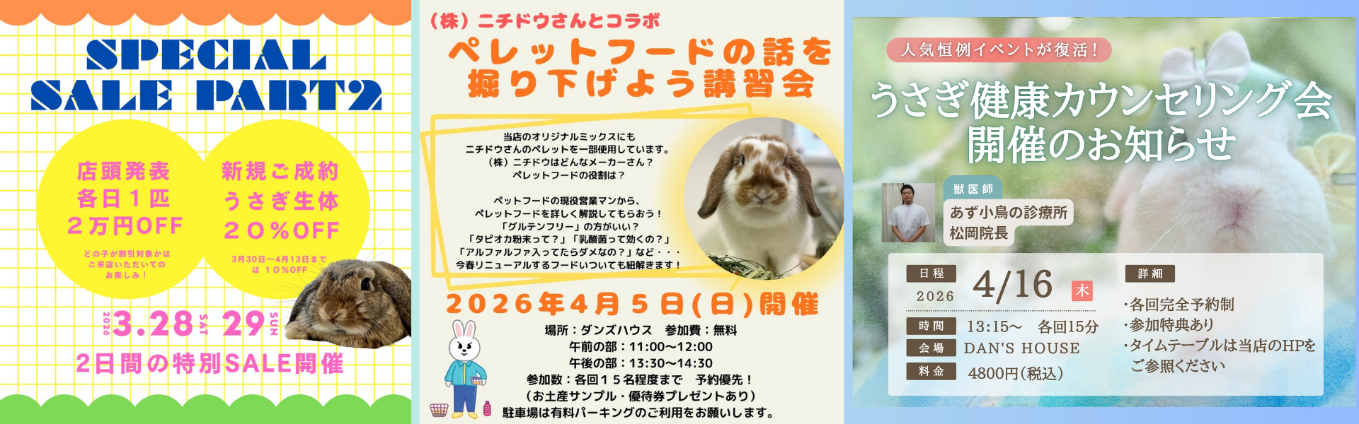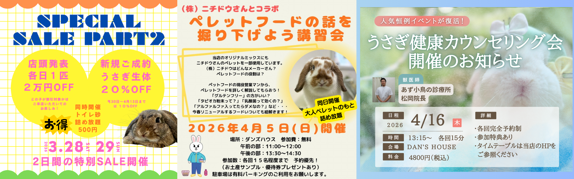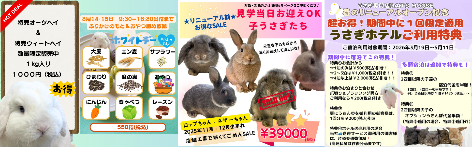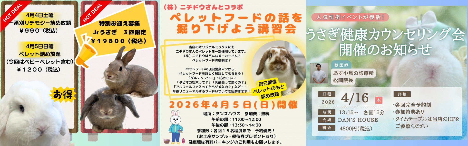 タイミングにより多種多様に子うさぎ達がいるとは限りませんが、たっぷり愛情を注いで育ててきた子達とご来店をお待ちしております。